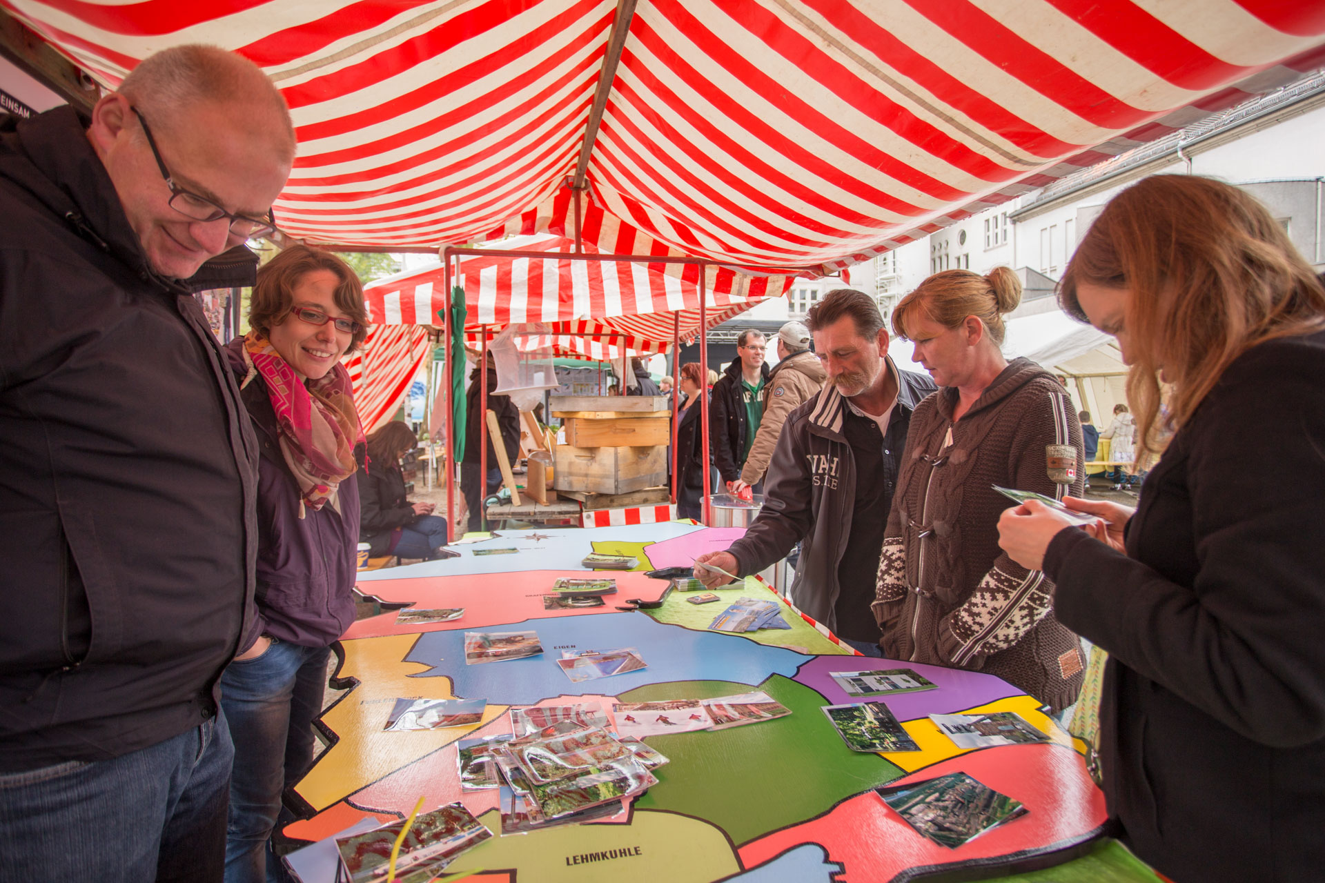 An den einzelnen Ständen konnten Kinder und Erwachsene die Natur mit Hilfe einzelner Sinne entdeckt: Es wurden Tierfelle und andere Naturmaterialien mit Händen und Füßen ertastet, Kräuter anhand des Geruchs erraten und zur interkulturellen Geschmacksreise durch das große Angebot an Speisen vor Ort eingeladen. An den zahlreichen Bastel-Ständen war dann die Kreativität der Gäste gefragt: Von eigens angelegten Mini-Biotopen in sogenannten „Klimagläsern“ am Stand der Hochschule Ruhr West über den Bau von Insektenhotels bis hin zu den Ständen der Kulturwerkstatt, an denen Kinder und Jugendliche ihre Visionen für die Zukunftsstadt malten, konnte dabei jeder aktiv werden.